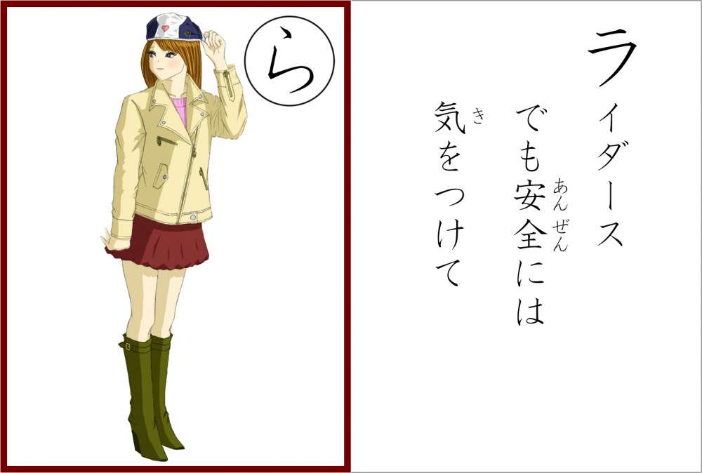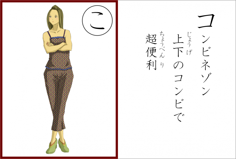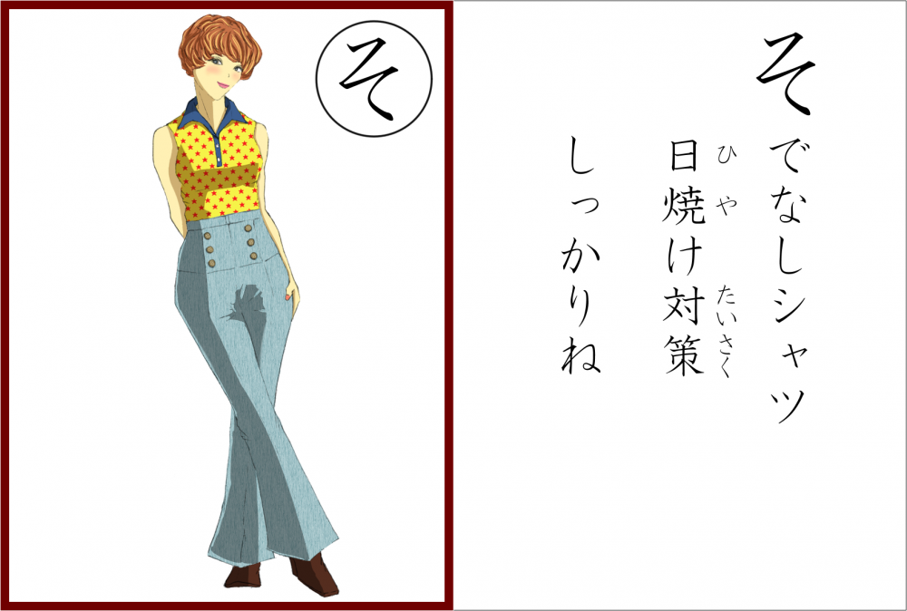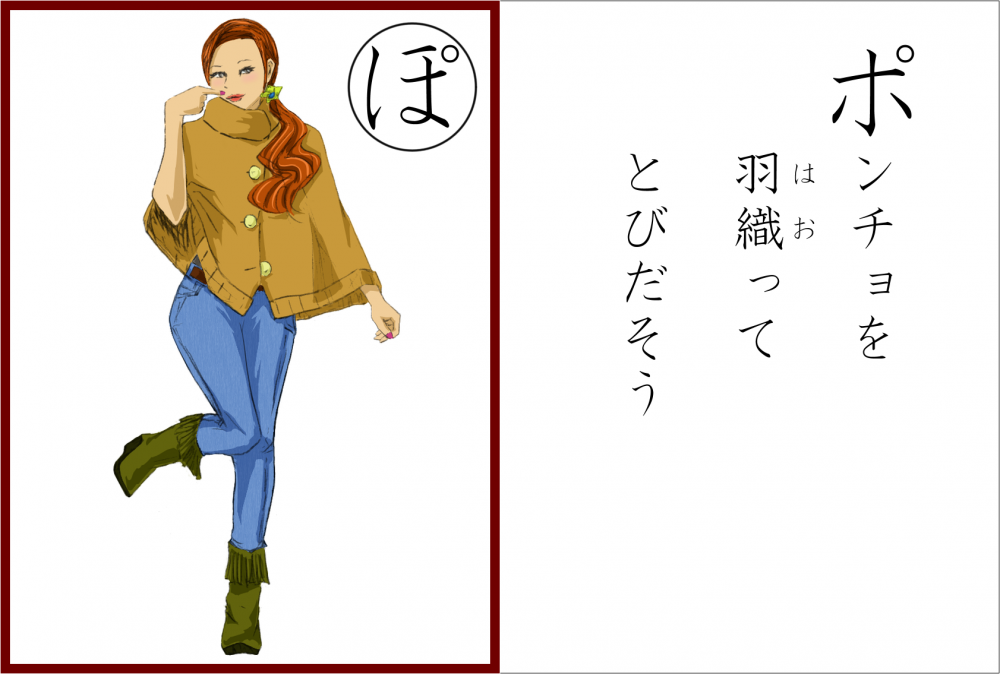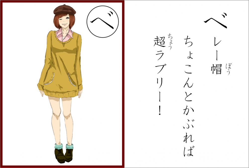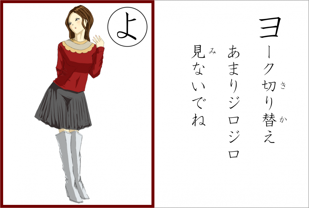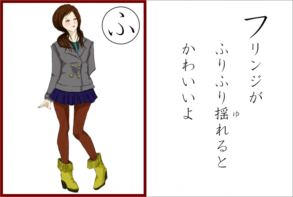 ファッションイラストで、かるたをつくっています。作者考案オリジナルファッションを描いた「オリジナルファッション編」と、街で見かけた素敵な女性を、記憶のみを頼りに描いた「いただきファッション編」の二つがございます。絵札、字札もろとも楽しんでいただけたら幸いです。